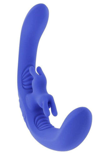 Take flight with this flexible dual-ended vibrator that features a curved, textured design and a 2-sided rabbit stimulator in the center. Powerful vibrations emanate from 3 motors – one in the center and one in each shaft – for an intense twin-pleasure experience.