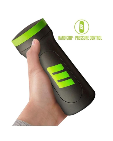 The flip open design is a marvel in engineering. It's design will accommodate thicker penises. And makes cleanup quick and simple. The smooth canister fits perfectly in the palm of your hand and has a good weight on it. To use, twist off green ring, then twist off black cap. You can opt to twist back on the green ring for a snugger fit and increased suction or keep it off if you are thicker than average.