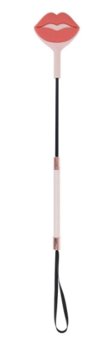 Seal the deal with a kiss they won’t forget. The Peaches ‘N CreaMe Kiss Crop features a soft, 100% silicone tip with a raised lip design that leaves a juicy kiss imprint with every well-aimed swat. The flexible yet firm tip delivers a sharp, satisfying sting that lingers on the skin and even longer in their memory. Adorned with gleaming rose gold accents and wrapped in peachy faux leather, the handle feels just as good in your grip as it looks. A matching wrist loop makes storage simple and impromptu play irresistible. With its flirty design and striking bite, this crop leaves a sensual mark that says, loud and clear: you were here.