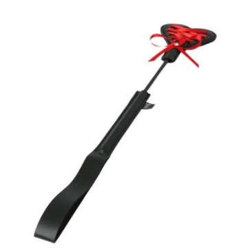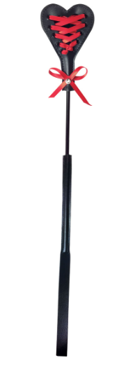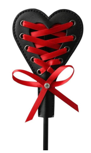 Create unique sensations with our new Heart Beat Crop. One side is smooth for spanking, stroking, and caressing. The other side features a plush red lace fabric tied up like a corsett harness and is adorned with a blinged bow. The bling adds to the sting! Use this beautiful new addition to your collection to invent your own Sex & Mischief fantasy.