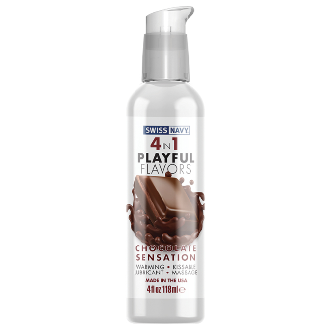 Swiss Navy 4-in-1 Playful Flavors offer multi-purpose pleasure options: Warming, Edible, Lubricant, Massage. Playful Flavors is lube for every lover’s lifestyle. From frisky foreplay to surreal sex, 4-in-1 Playful Flavors makes it easy to explore ways to add more play to every love life.